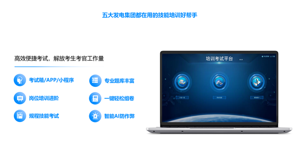 培訓(xùn)考試平臺(tái)由考試箱和培訓(xùn)考試系統(tǒng)組成,在現(xiàn)場(chǎng)培訓(xùn)考試場(chǎng)景下,利用考試箱自帶投影儀、答題器,無(wú)需專用場(chǎng)地,只需一面墻即可完成培訓(xùn)及考試,有效解決考試人員多、專用場(chǎng)地不足的問(wèn)題;在遠(yuǎn)程培訓(xùn)考試場(chǎng)景下,利用平臺(tái)內(nèi)置多種作弊識(shí)別算法,自動(dòng)識(shí)別掛機(jī)、替考、切屏等違規(guī)行為。平臺(tái)內(nèi)置電力行業(yè)課件與題庫(kù),支持小程序、APP、PC多端接入。
