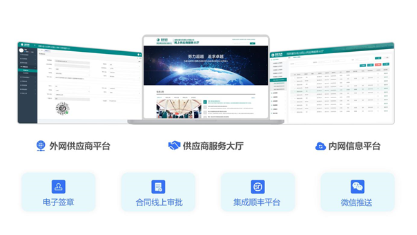 供應商服務平臺是企業(yè)物資采購部門為供應商提供的一站式線上服務平臺,為供應商提供電子簽章線上授權、中標通知書推送、代理服務費發(fā)票推送、順豐快遞平臺數(shù)據(jù)集成、合同線上審批等服務,打造“資料快遞不用跑、一鍵授權用一年、業(yè)務流程透明可控”的營商環(huán)境新生態(tài)。