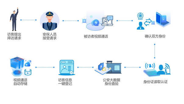 訪客出入管理平臺為企事業(yè)單位提供來訪人員的身份信息確認(rèn)、出入快速登記、信息自動存檔功能。平臺采用身份識別、人臉識別技術(shù),對訪客合法性進(jìn)行認(rèn)證,簡化企事業(yè)單位訪客出入登記操作;通過視頻通話功能讓被訪者利用個人手機對訪客身份進(jìn)行確認(rèn),杜絕訪客的不請而入,加強企事業(yè)單位的安全防護(hù)。平臺將訪客到訪時的身份證驗證、人臉比對、視頻通話、信息錄入進(jìn)行集成,將訪客登記過程、視頻通話內(nèi)容自動與登記信息關(guān)聯(lián)并存檔,使出現(xiàn)安全事故時有跡可循、有據(jù)可依,快速找到責(zé)任人。