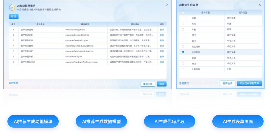 金現(xiàn)代入選的基于人工智能的輕騎兵低代碼PaaS平臺(tái),作為企業(yè)數(shù)字化建設(shè)的底座,通過(guò)支持私有化部署的智譜華章ChatGLM大語(yǔ)言模型,創(chuàng)新性地構(gòu)建低代碼領(lǐng)域?qū)S写竽P停瑢?shí)現(xiàn)數(shù)據(jù)模型的自動(dòng)生成和表單自動(dòng)構(gòu)建,同時(shí)提供自然語(yǔ)言交互的應(yīng)用智能搭建能力,智能推薦生成功能模塊、數(shù)據(jù)模型、表單、代碼等,大大提高了配置開(kāi)發(fā)工作的效率和準(zhǔn)確率,能夠幫助企業(yè)降低研發(fā)難度和研發(fā)成本,提升研發(fā)效率和研發(fā)質(zhì)量。